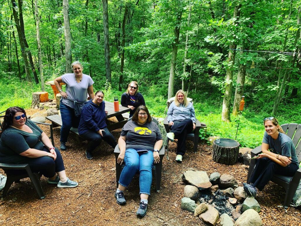 Becky’s Mindful Kitchen, is located outside of Iowa City, and provides truly unique team building and leadership retreats, strategic planning workshops, private parties and classes and weekly summer camps for kids. The commercial teaching kitchen, treehouse, archery range, bush craft skills, first aid training, wood fired pizza oven, chickens, baby goats and timber adventure playground provides endless opportunities for hands on activities.